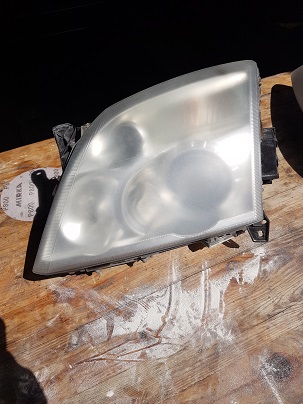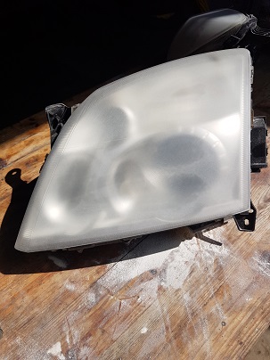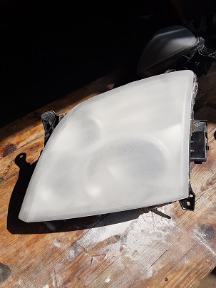 Schleifen der Klarsichtflächen mit Körnung P180 bis keine Alten Klarlackreste mehr zu sehen sind (Klarlack ist leicht gelblich zu erkennen).