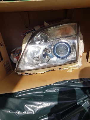 Scheinwerfer abkleben und in die Umzugskartons legen.